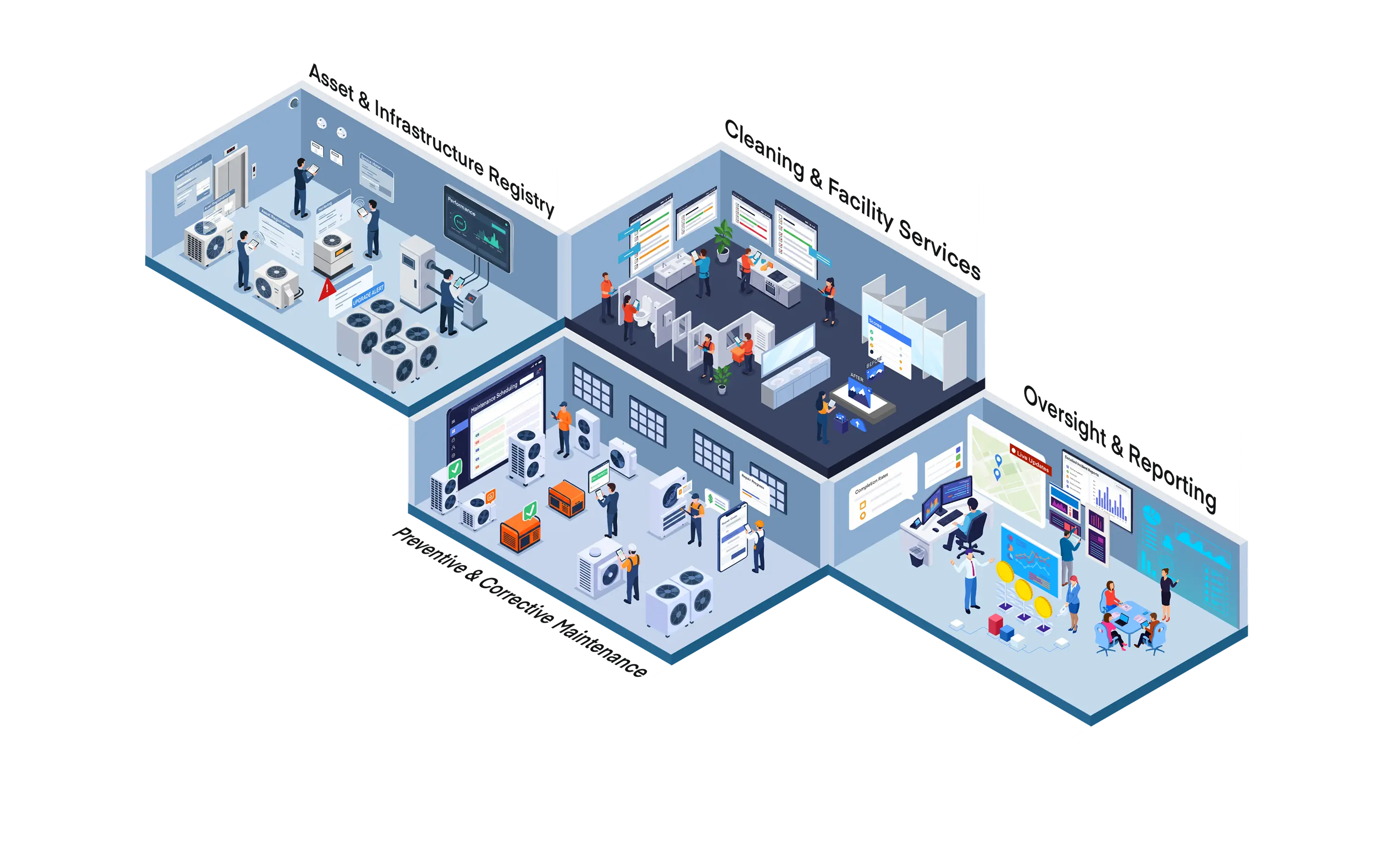 • Manual scheduling of cleaning, repairs, and inspections leads to missed tasks